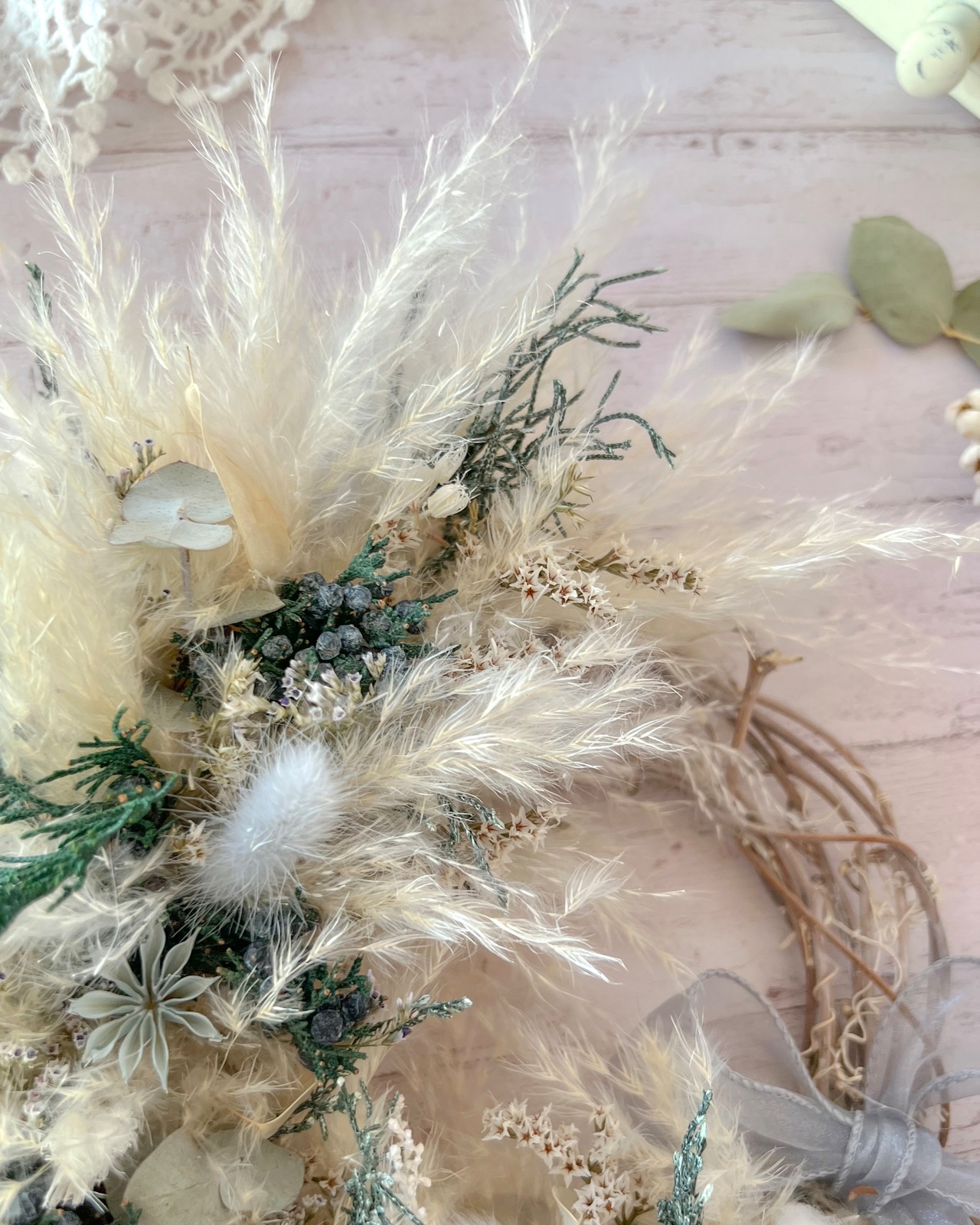 〜雪の妖精〜 パンパスグラス クリスマスリース みぞれ